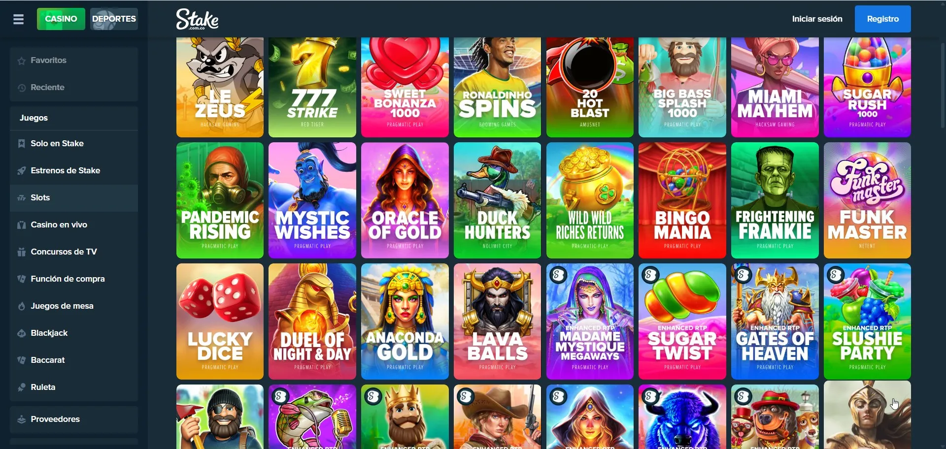 - Variedad: la combinación de grandes proveedores, títulos de alta volatilidad y los Stake Originals ofrece una biblioteca amplia apta tanto para jugadores recreativos como para high-rollers.